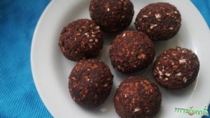 - Amikor kicsit kihűlt hozzákeverjük a zabpelyhet, hűtőbe tesszük egy kis időre, majd golyókat formázunk belőle.